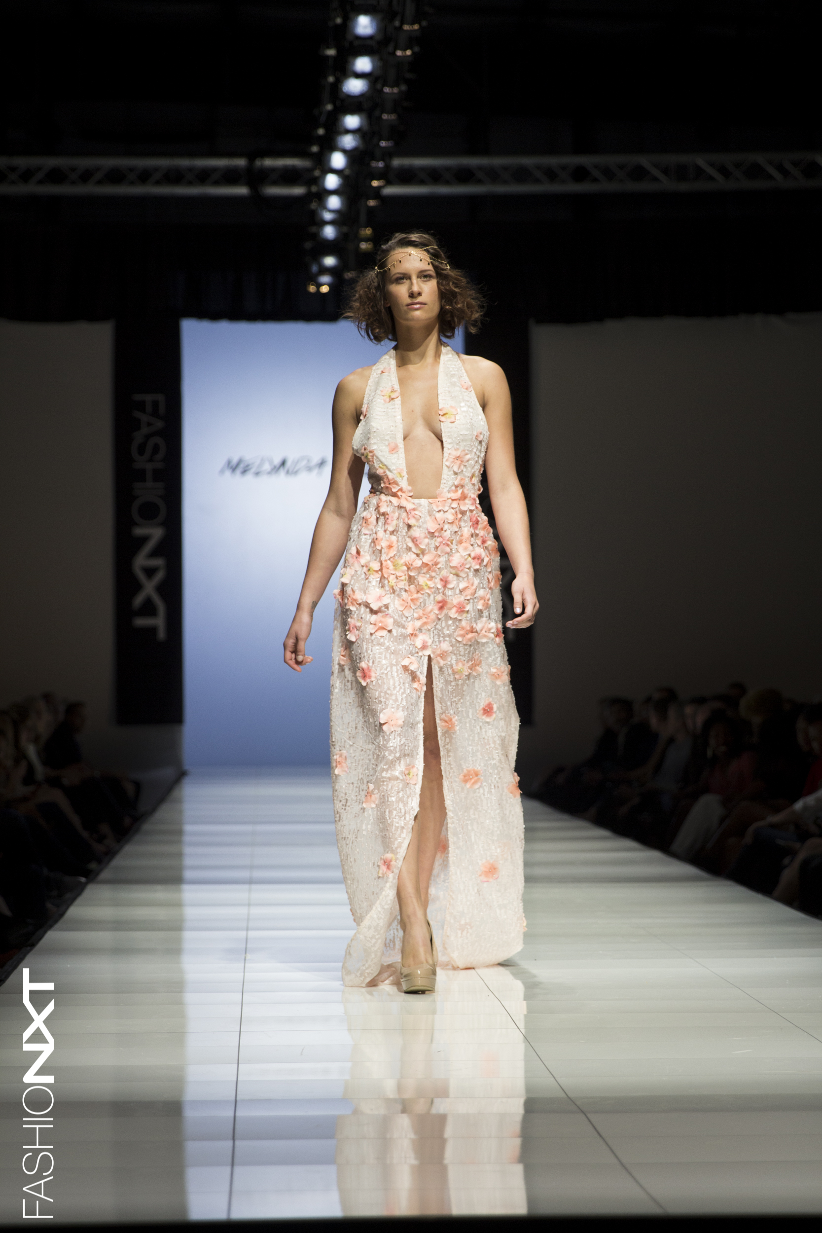 The first collection of the night, by Julie Danforth, is definitely for the working woman; beautiful silk fabrics, blazers/pant suits, and simple yet elegant dresses. Next, Melynda Valera’s collection made me think of Mother Nature. Every look was white with coral flowers as 3D embellishments along with plenty of plunging necklines.
